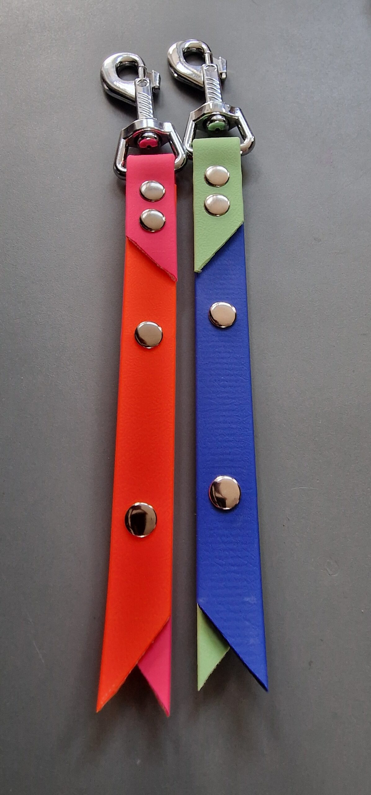 Biothane korthouder 16 mm 2 kleuren Handig zonder handvat zodat je hond er niet aan blijft hangen of instapt. Voor 19 mm 2 euro meer